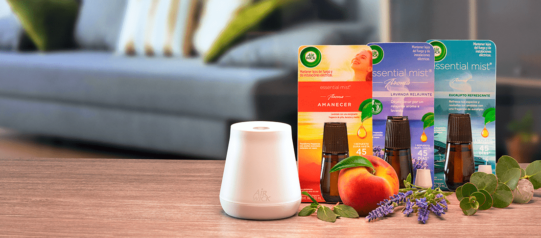 Air Wick® Essential Mist con aceites esenciales, es la herramienta perfecta para inspirar tu estado de ánimo y el de tu familia. Atrévete a descubrir sus fragancias y disfruten de sus beneficios siempre.