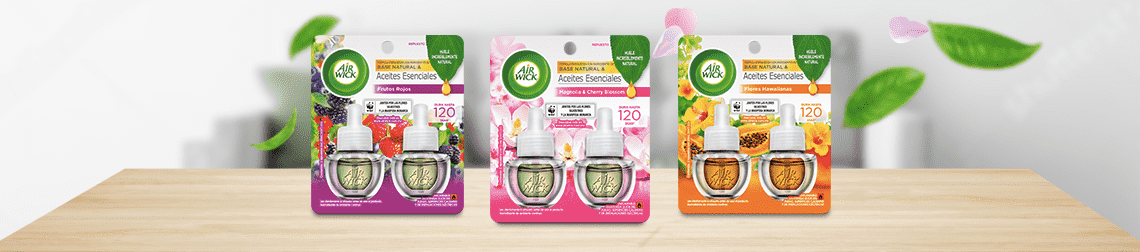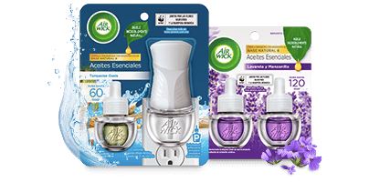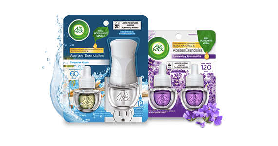 Además, recuerda que la fórmula de los aromatizantes de ambiente continuo de Air Wick® está enriquecida con ingredientes de base natural y aceites esenciales.