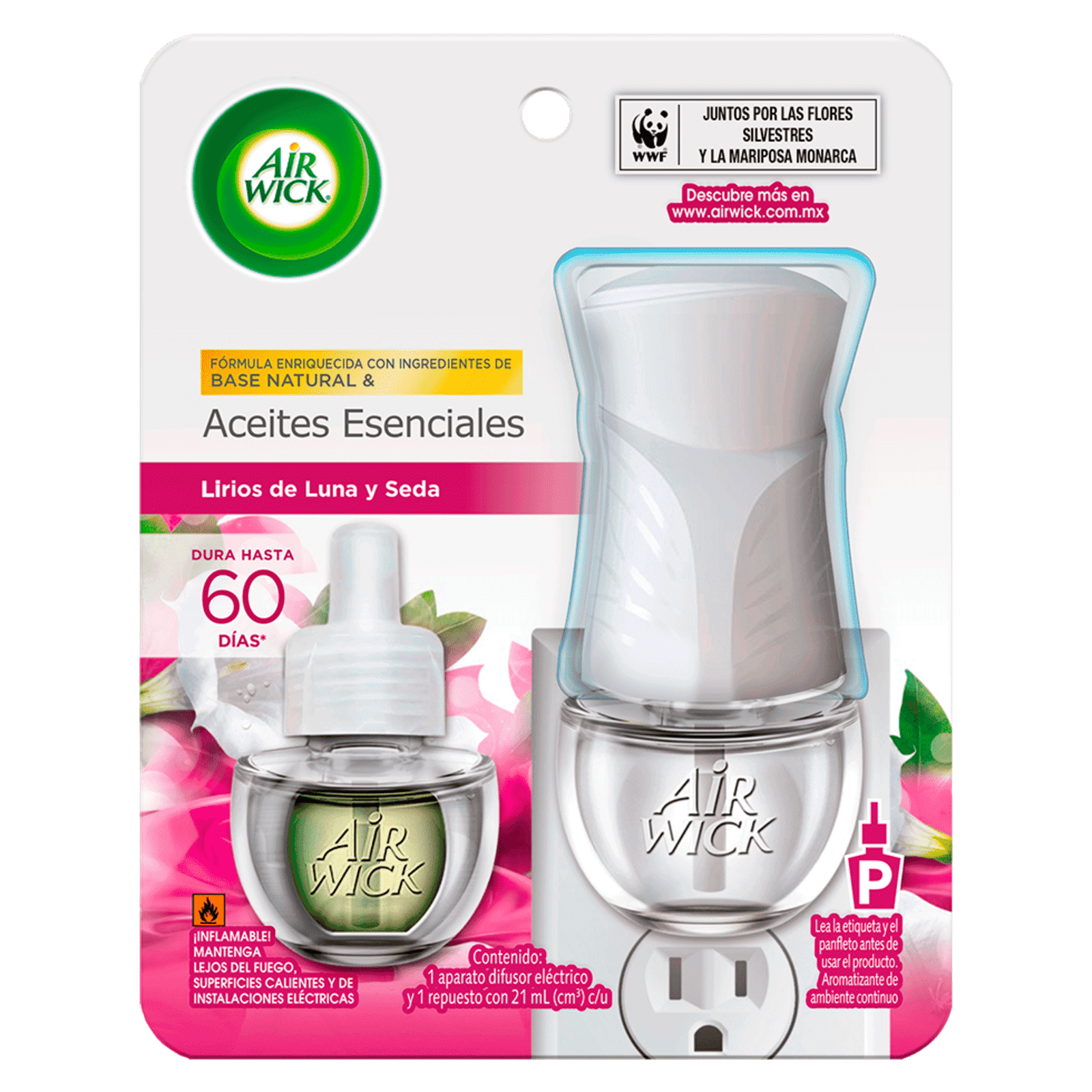 AIR WICK® AROMATIZANTE DE AMBIENTE CONTINUO LIRIOS DE LUNA Y SEDA 1 APARATO DIFUSOR ELÉCTRICO Y 1 REPUESTO 20 ML