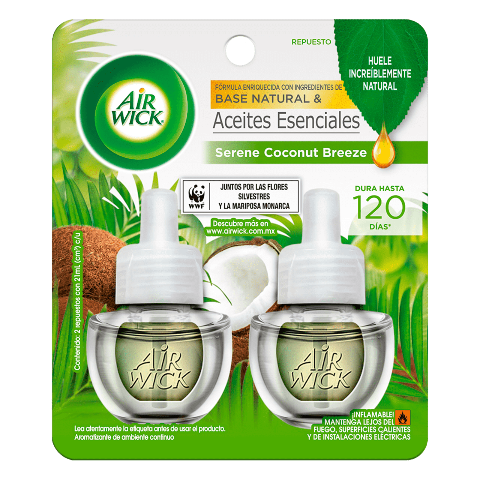 AIR WICK® AROMATIZANTE DE AMBIENTE CONTINUO SERENE COCONUT BREEZE 2 REPUESTOS 20 ML C/U