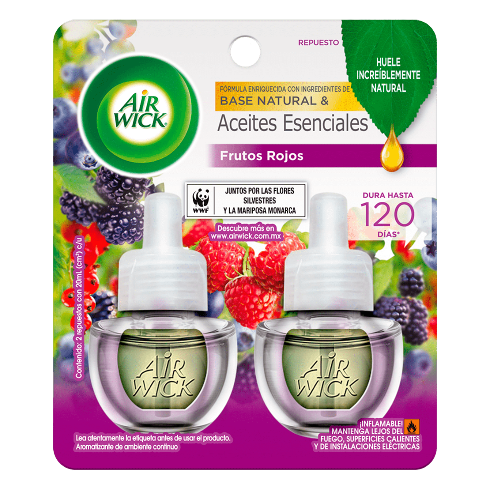AIR WICK® AROMTAIZANTE DE AMBIENTE CONTINUO FRUTOS ROJOS 2 REPUESTOS 20 ML C/U