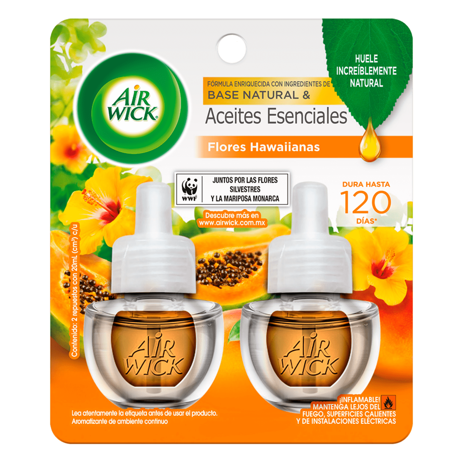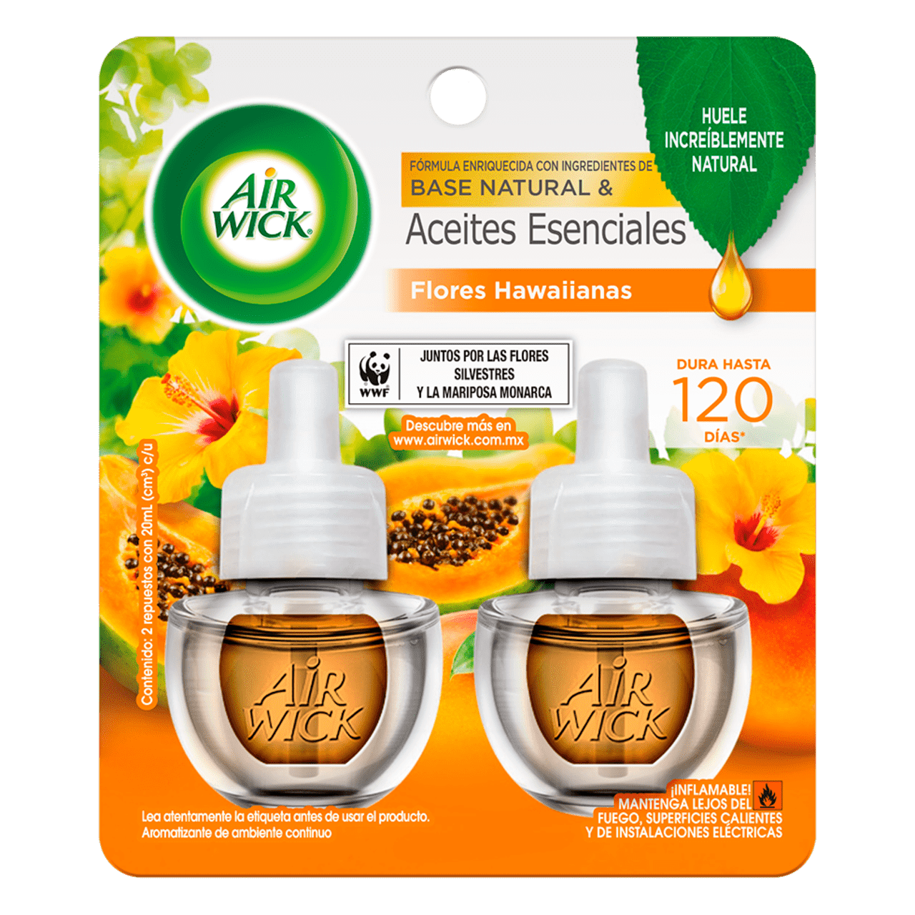 AIR WICK® AROMATIZANTE DE AMBIENTE CONTINUO FLORES HAWAIIANAS 2 REPUESTOS 20 ML C/U