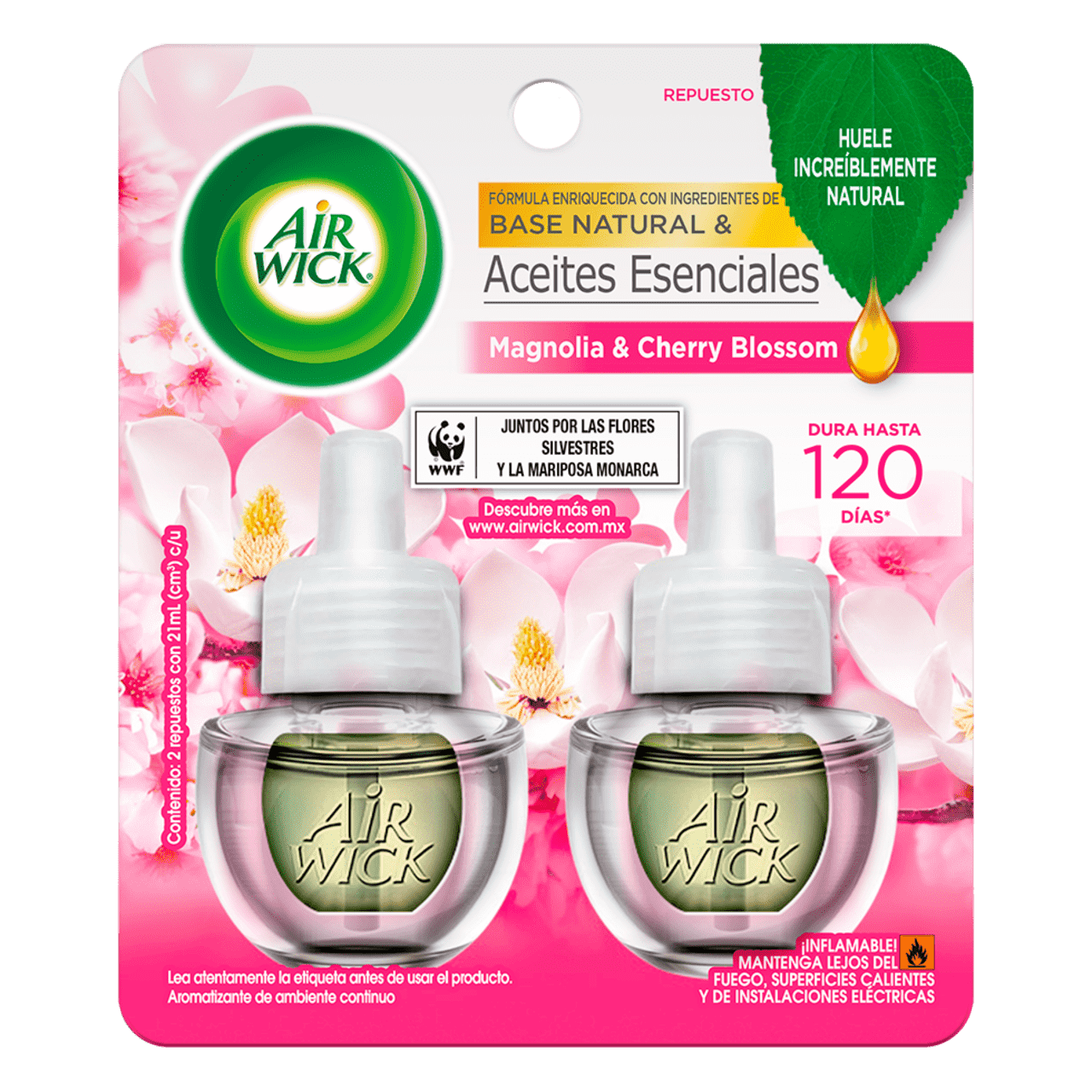 AIR WICK® AROMATIZANTE DE AMBIENTE CONTINUO MAGNOLIA & CHERRY BLOSSOM 2 REPUESTOS 20 ML C/U