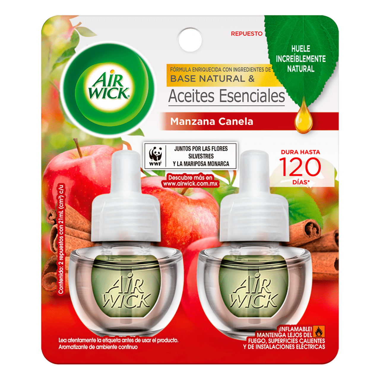 AIR WICK® AROMATIZANTE DE AMBIENTE CONTINUO MANZANA CANELA 2 REPUESTOS 20 ML C/U