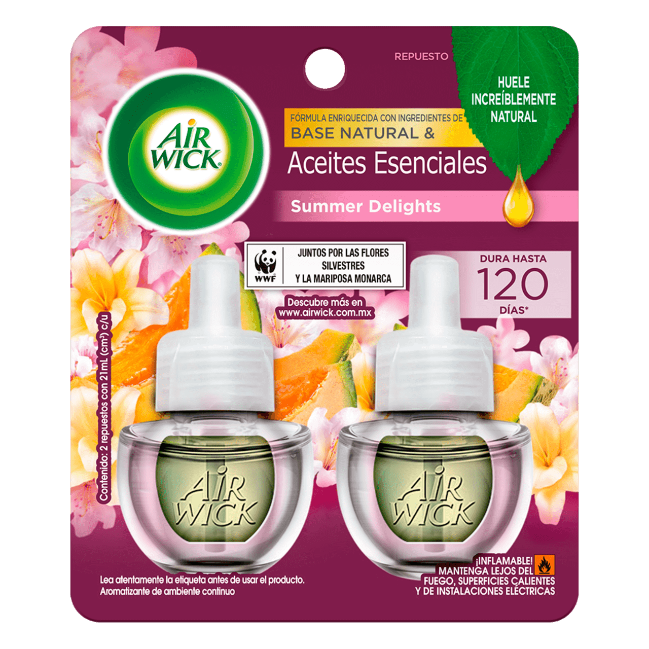 AIR WICK® AROMATIZANTE DE AMBIENTE CONTINUO SUMMER DELIGHTS 2 REPUESTOS 20 ML C/U