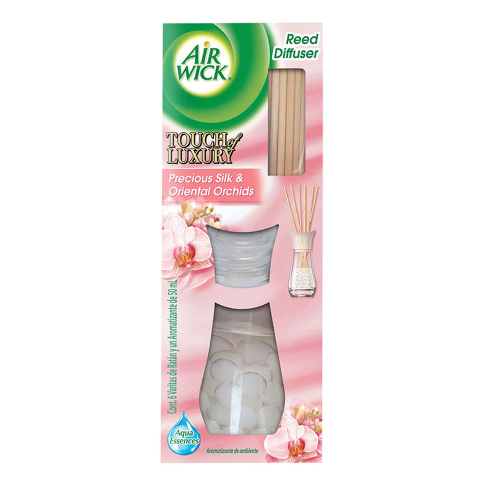 AIR WICK® REED DIFFUSER AROMATIZANTE DE AMBIENTE PRECIOUS SILK & ORIENTAL ORCHIDS, 6 VARITAS DE RATÁN Y 50 mL DE AROMATIZANTE